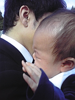 パパが前向き縦抱きで揺らして