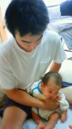 パパと二人で頑張ってあやしました